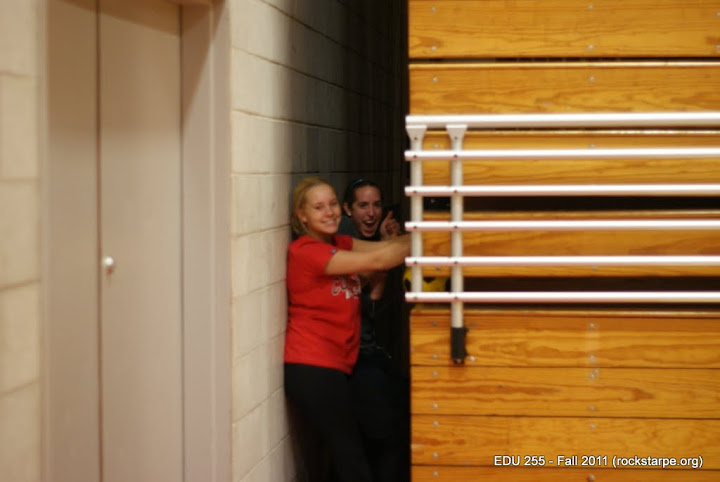 One thing that I absolutely need to work on is recognizing where I am within the gymnasium. I tend to have my back to students when I am instructing others. Proffessor Yang caught me sleeping and told two of the students to go hide behind the bleechers. These two students were actually acting up at the begining of the lesson when they were kicking the ball over the net when I had instructed everyone to just pass the ball back and forth. I should have known that they were going to be trouble but i let it slip by. They hid until I had concluded my lesson and then it was brought to my knowledge. I will work on this.
