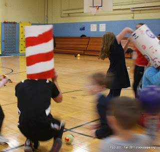 This day landed on Halowen and was very festive. Almost all the college students dressed up in costumes. I planned on taking part in the tradition until my costume got ripped the day before. I had the outfit of "Mr. Incredible" from the Pixar movie, The Incredible's. I was dissapointed that I could not wear it because I knew that the kids would have loved it. But anyway, the day was very fun because everyone was in a great mood for what the night was about to bring. Candy and tick or treating is what was constantly on the kids minds. I presented a game at the end of the day when we had to whole program participating and it was called, "Trick or Treat." I know, very creative. The game consisted of myself and four other college students walking around with these big cylanders on our shoulders. We were considered the "candy bags" and the kids had to throw all different balls and toys, which were "candy" up in in the top so that they could eat it all later.